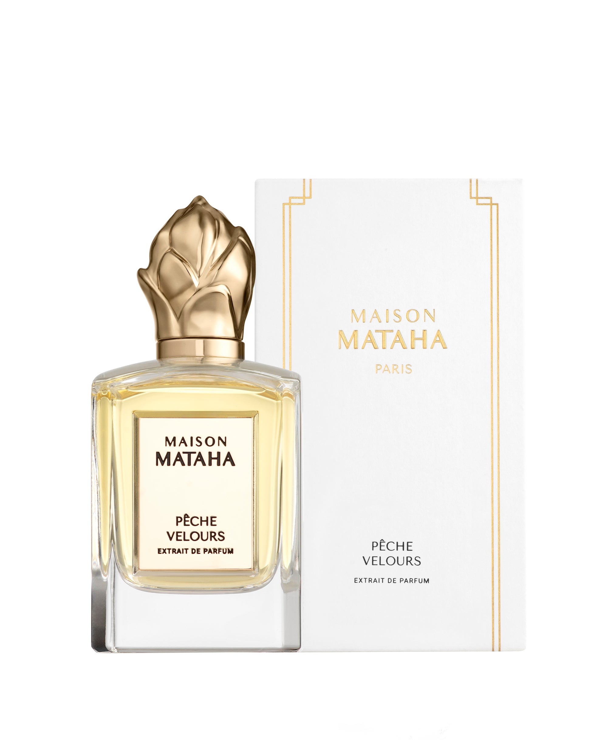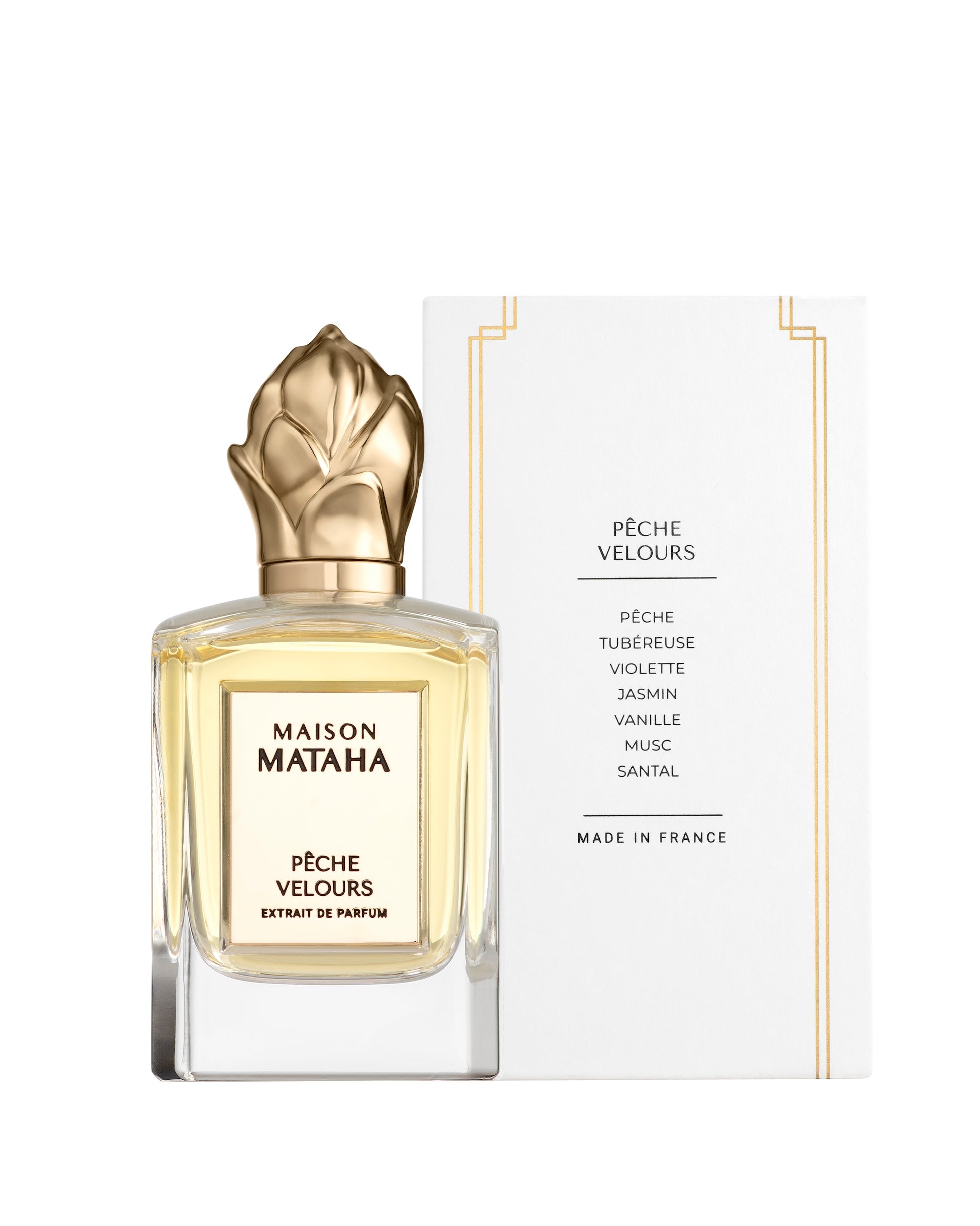 Maison Mataha Peche Velours Extrait de Parfum is a women's fruity perfume. The sun at peak, summer embracing the skin, and a ripe peach just waiting to be savored: Peche Velours Extrait de Parfum is the perfect photograph of that suspended instant. A fragrance that opens with the juicy bite of a velvety peach, warm with sunshine, freshly picked and still alive with light. This fruity burst is followed by a heart of white flowers: sunny tuberose, powdery violet and a caressing touch of jasmine blend in an impalpable embrace, like light fabric on bare skin. The trail finally settles on a gentle, reassuring base, where vanilla intertwines with delicate musk and silky-soft sandalwood. Peche Velours Extrait de Parfum is a sensory journey that melts slowly, like the echo of an August afternoon, leaving a luminous and irresistibly mouthwatering memory.